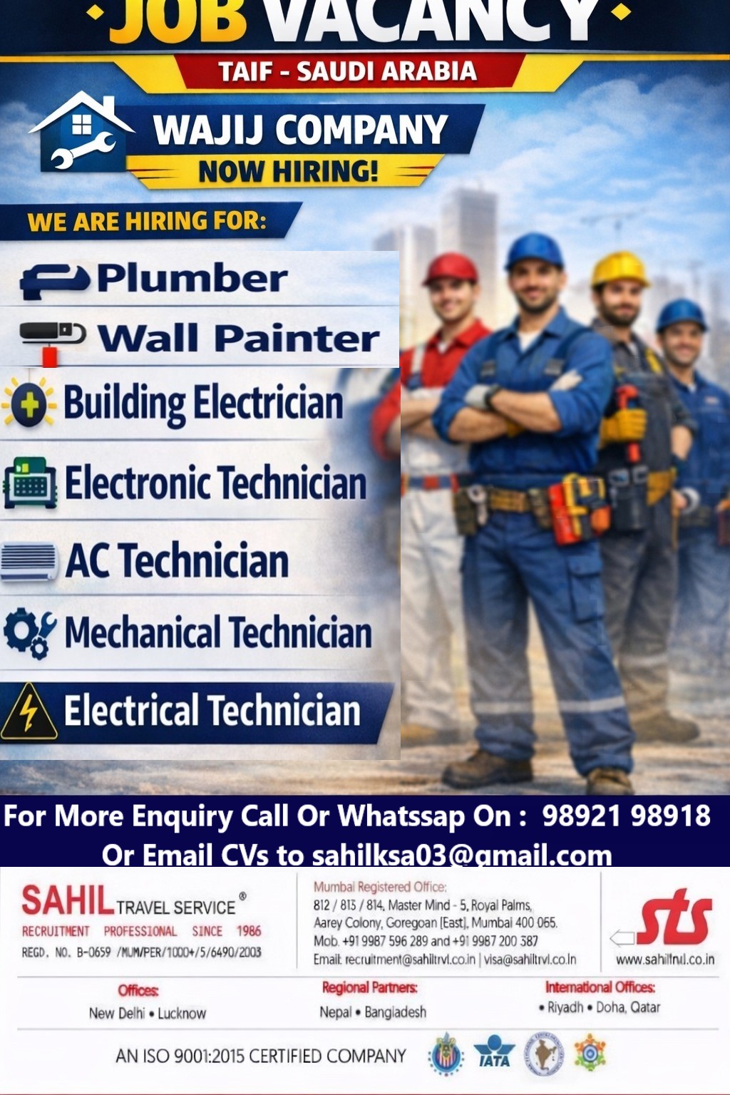 HIRING FOR WAJIZ COMPANY IN TAIF,SAUDI ARABIA
