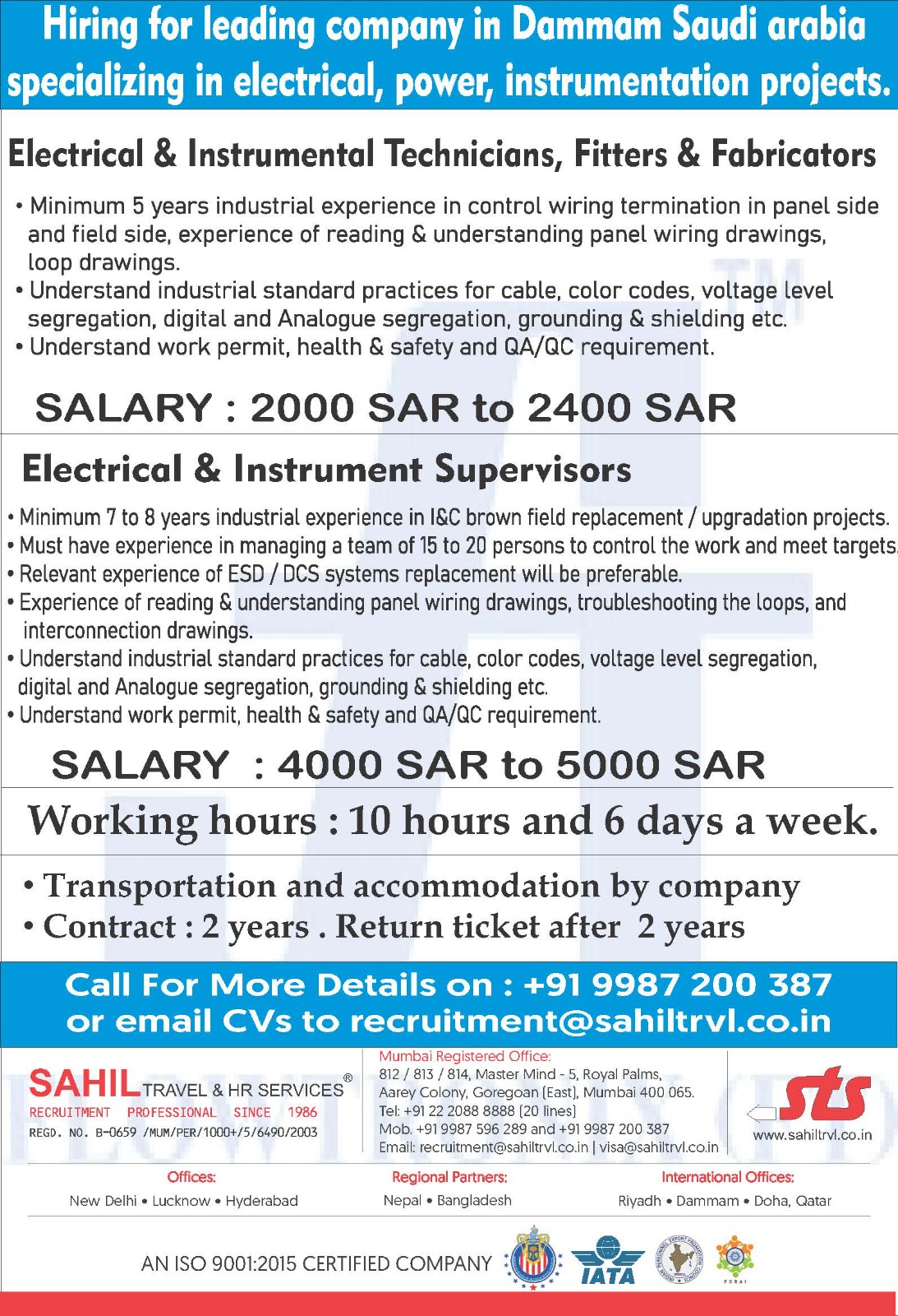 HIRING FOR LEADING COMPANY IN DAMMAM SAUDI SPECIALIXING IN ELECTRICAL POWER,INSTRUMENTATION PROJECT