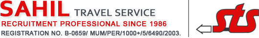 Sahil Travel Service is licensed by the Government of India, Ministry of labour for Manpower Recruitment.. STS is fully committed to provide satisfactory service to our clients for the last few years. We have a team of highly qualified and professionals.